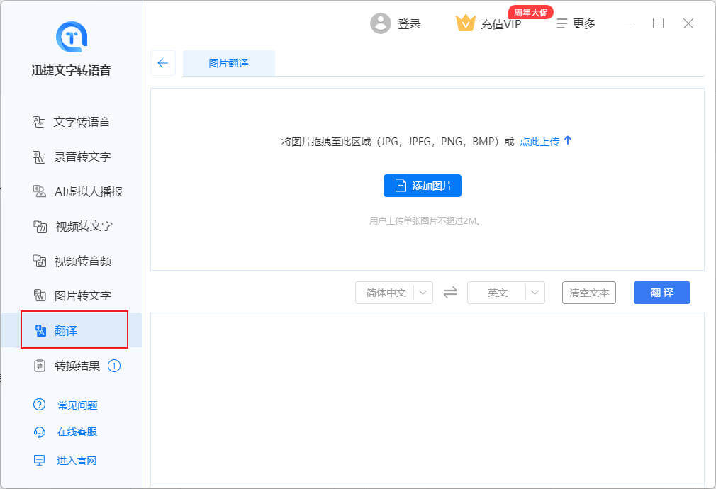 Gehen Sie in die Funktion Bildübersetzung ein, um Textinformationen in Bildern im Format png, jpg, bmp oder jpeg zu erkennen und die Übersetzung zu verarbeiten. Unterstützung für gegenseitige Übersetzungen in vereinfachtes Chinesisch, Englisch, Russisch und andere Sprachen.