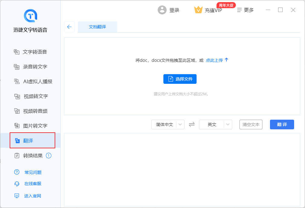 Gehen Sie in die Funktion "Dokumentübersetzung" ein, um die Textinformationen in doc- und docx-Dateien zu erkennen und die Übersetzung zu verarbeiten. Unterstützung für gegenseitige Übersetzungen in vereinfachtes Chinesisch, Englisch, Russisch und andere Sprachen.